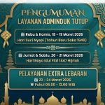 📢 PENGUMUMAN LAYANAN ADMINDUKDalam rangka memperingati hari besar keagamaan, layanan administrasi kependudukan DITUTUP SEMENTARA pada:📅 18 – 19 Maret 2026(Hari Suci Nyepi / Tahun Baru Saka 1948)📅 20 – 21 Maret 2026(Hari Raya Idul Fitri 1447 Hijriah)